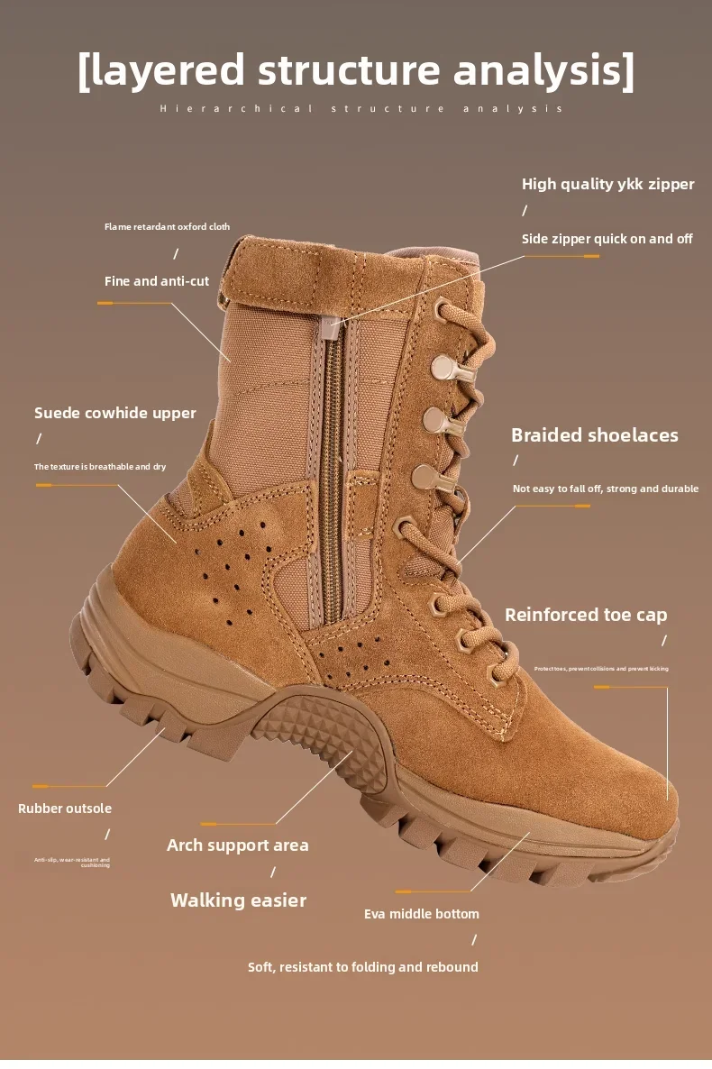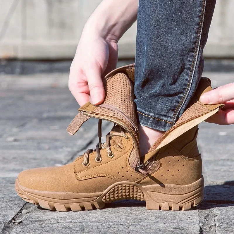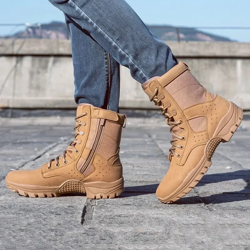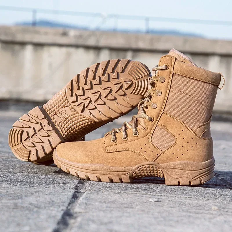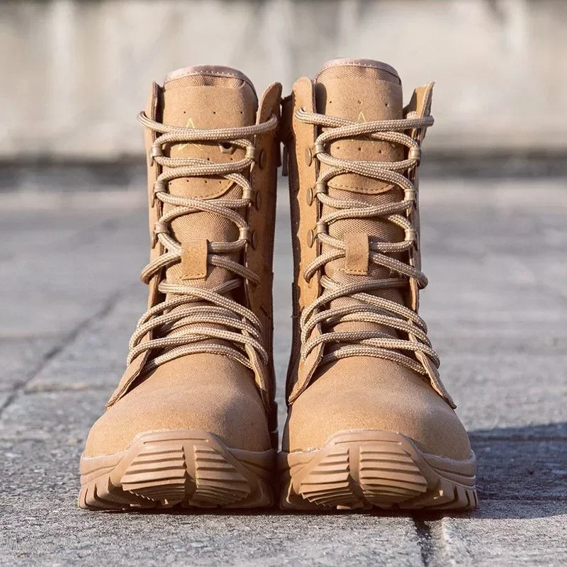 2025 new combat training boots men's ultra-light outdoor waterproof training boots cowhide anti-puncture breathable desert boots