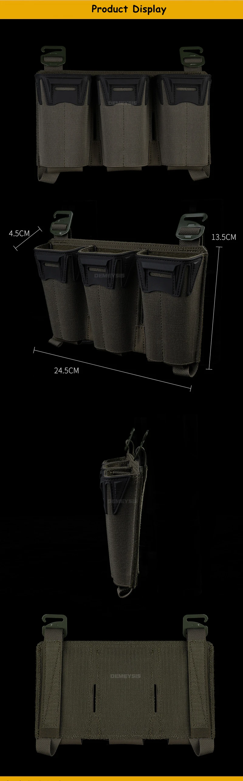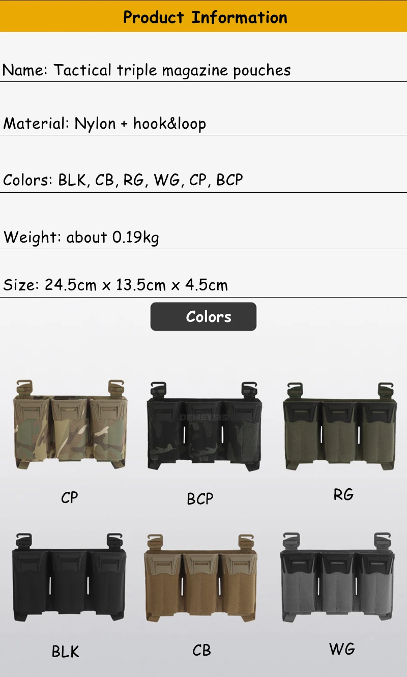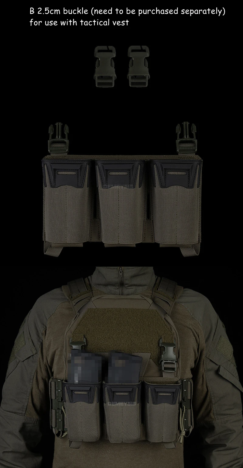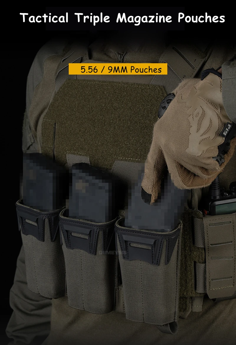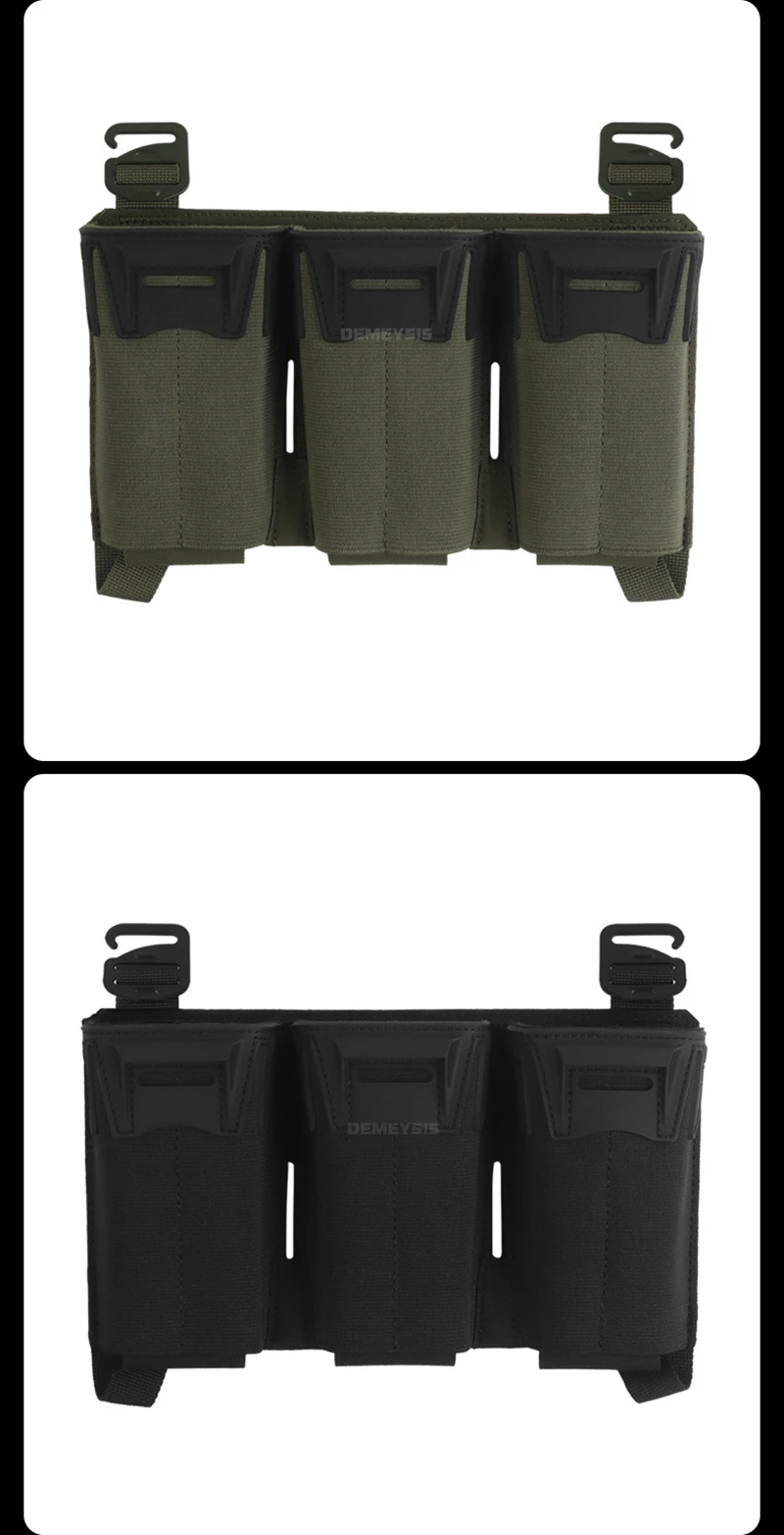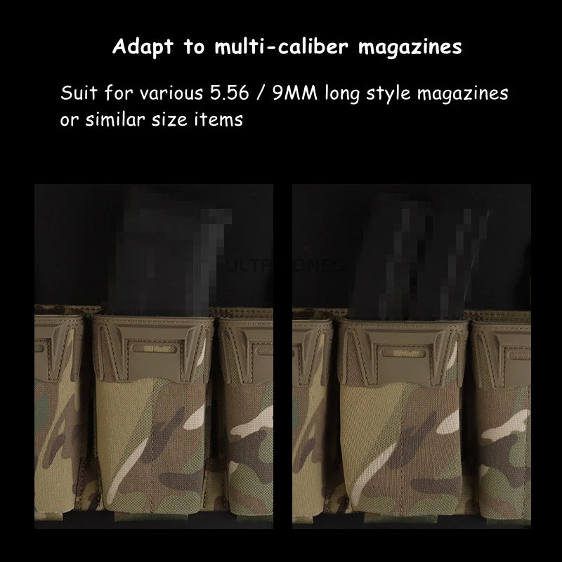 Tactical Shooting Multi-Caliber Triple Magazine Placard Pouch 5.56 / 9MM Extended Vest Front Carrier Bag Triple Mag Pouches