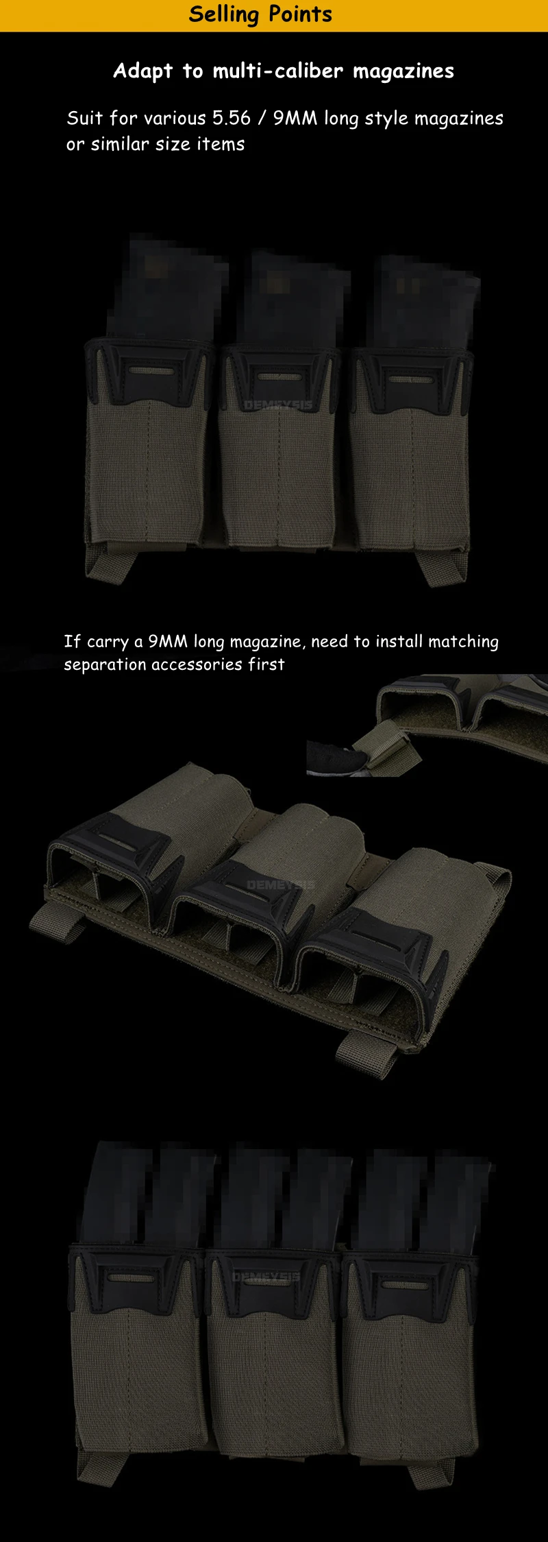🔫 Universal Fit – Holds 3×5.56/9mm mags or similar size items